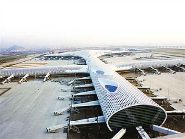 深圳機(jī)場(chǎng)T3航站樓是深圳寶安國(guó)際機(jī)場(chǎng)擴(kuò)建工程的主體部分,由深圳機(jī)場(chǎng)T3航站樓和GTC兩個(gè)部分組成。其中T3航站樓占地19.5萬(wàn)平方米,南北長(zhǎng)約1128米,東西寬約640米,總建筑面積45.1萬(wàn)平方米,方大集團(tuán)承建的立面幕墻面積為16.7萬(wàn)平方米,主立面采用呈60.2度傾斜的方大Low-E節(jié)能環(huán)保玻璃幕墻,既為旅客帶來(lái)更為開(kāi)闊的視野,也為整個(gè)大廳帶來(lái)充足的自然光。